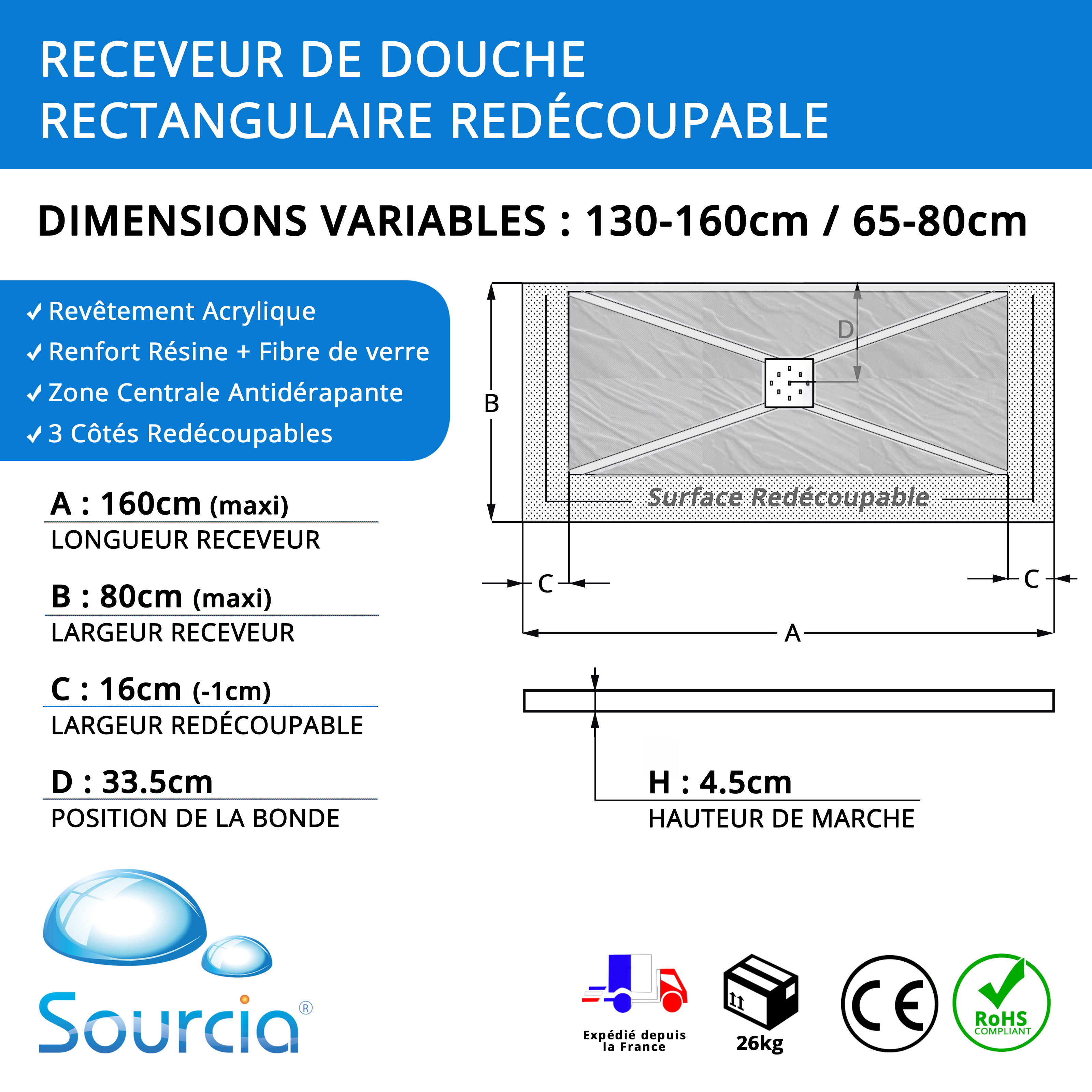 Receveur de douche AQUAPLUS - 160x80 Blanc