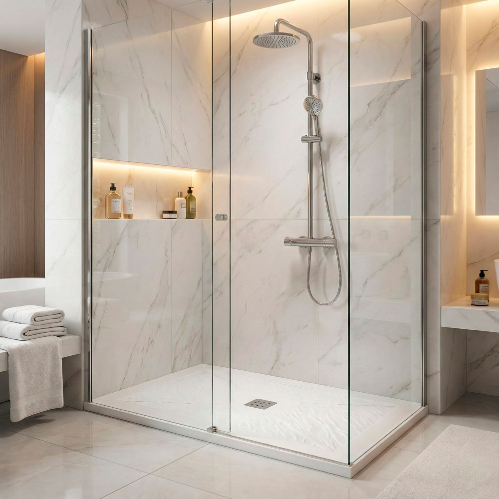Le receveur extra-plat facilite le passage du fauteuil roulant ou limite l'effort à fournir pour entrer dans la douche grâce à sa très faible marche de 4 cm d'épaisseur.